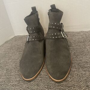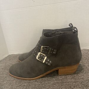 Dolce Vita Booties Women’s 10 Grey Ankle Boots Suede Buckle Block Heel Western
