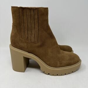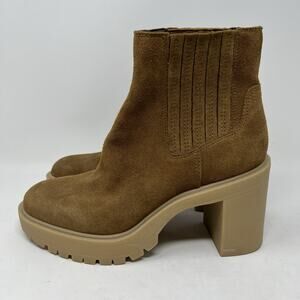 Dolce Vita Boots Caster H2O Ankle Booties Camel Brown Suede Lug Sole Size 8