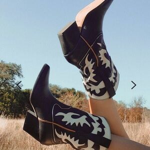 Dolce Vita Boots Lori Croc Embossed Cutout Braided Western Festival Boho Black 8