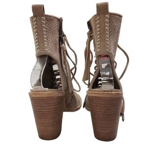 Dolce Vita Boots Womens 6.5 Tan Suede Peep Toe Perforated Block Zip Cutout Lace