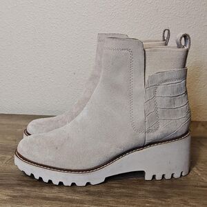 Dolce Vita Boots Womens Size 8.5 Ivory Suede Chelsea Wedge Lug Sole Pull On