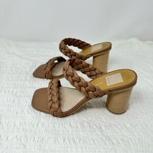 Lovely heeled sandals from Dolce Vita in size 8.5. They feature square toes, a thick round heel, and braided loops across the toe and mid foot.