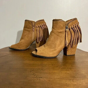 Dolce Vita Brown Faux suede fringe open toe booties size 11