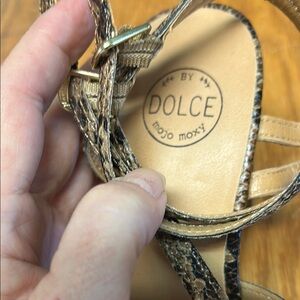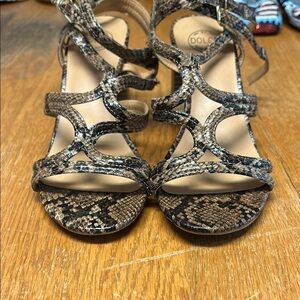 Elevate your style with these Dolce Vita brown heels, featuring an elegant strappy design that adds a touch of sophistication to any outfit. The rich brown color complements the intricate straps, making them perfect for both casual and formal occasions. Experience comfort and style with every step in these chic heels.