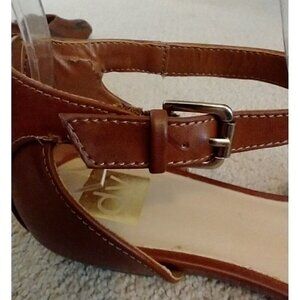 Dolce Vita Brown Leather Pointed Toe Ankle Wrap Back Zip Flats - Sz 10M