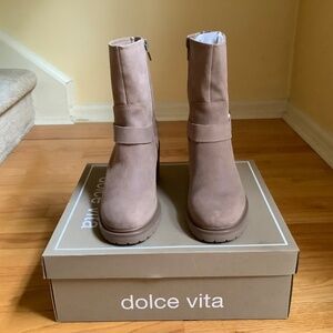 Dolce Vita Camros Leather Buckled Moto Ankle Boot Truffle SZ 9.5
