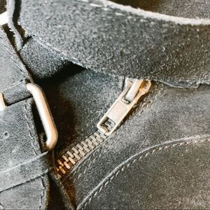 Good preowned condition. Size 8. Suede leather upper. Cute buckle and zipper detail.