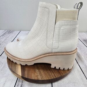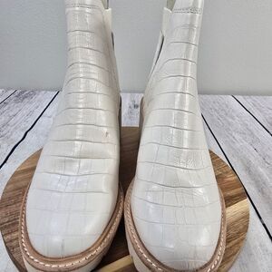 Dolce Vita Cream Croc-Embossed Ankle Booties