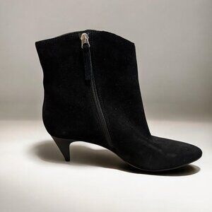 β¨ Soft, genuine black suede ankle boots with a sleek silhouette and side zipper closure.