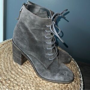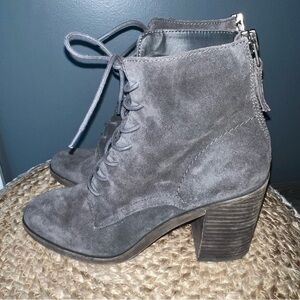 Beautiful Dark Gray Lace Up Ankle Boots with a Chunky 3.5” Heel. Back Zip for Easy Access. More Details in Photos. Excellent Used Condition 🚭