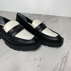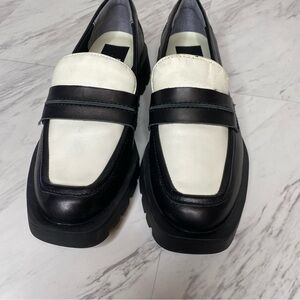 Dolce Vita Elias Black White Leather Square Toe Loafers 6 1/2