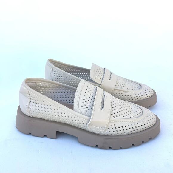 Dolce Vita Ersula Cream Perforated Chunky White Loafers 8 Preppy Shoes