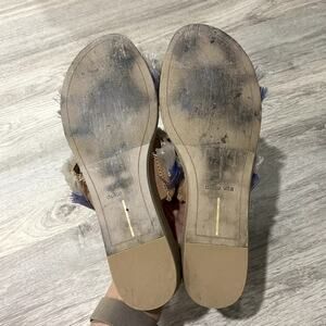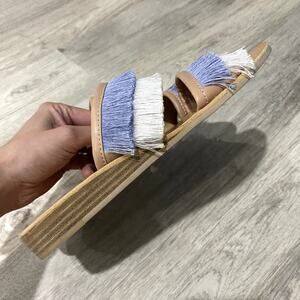 Blue and white fringe sandals with small wedge. Worn once ! Size 6.5