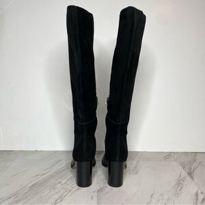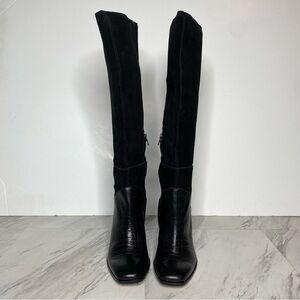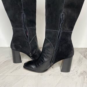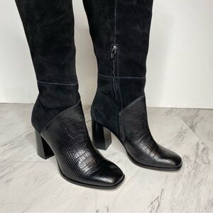 Dolce Vita Fynn Black Suede Crocodile Embossed Leather Heeled Tall Boots 7 1/2