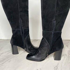 Dolce Vita Fynn Black Suede Crocodile Embossed Leather Heeled Tall Boots 8