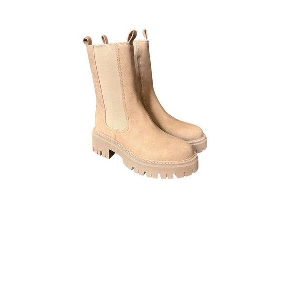 Dolce Vita Garden Chelsea Boot 7 Stone Beige Suede Chelsea Chunky Lug Platform