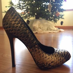 Beautiful shoes, perfect for the season. 4.5" heels with 0.5" hidden platform. Excellent condition. Barely used. Leather upper/ sole. Includes original box.
