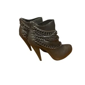 Dolce Vita Gray Chain Ankle Boots Women’s Size 8 High Heel Booties Rocker Punk