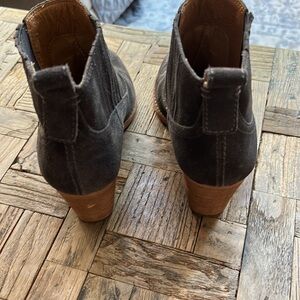 Dolce Vita Jones Gray Suede Western Ankle Boots. Stacked heel. Slip on style. Elastic stretch side panels. Gray suede leather upper. See all photos for signs of wear(inside and out) Size 7 1/2