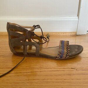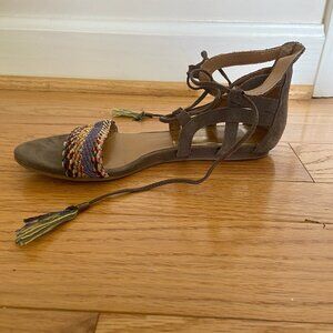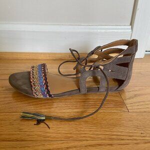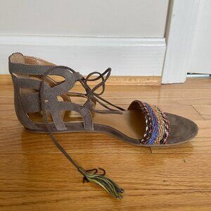 Dolce Vita Gray Suede Sandals With Tassel Ties and Knit Detail on Strap Size 7