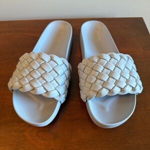 Stylish woven sandals. Comfortable slide design. Perfect for casual wear.