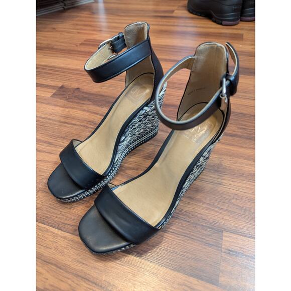 Dolce Vita Hamlet Black Ankle Strap Wedge Sandals - Size 7