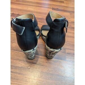 Color: Black with woven espadrille-style wedge