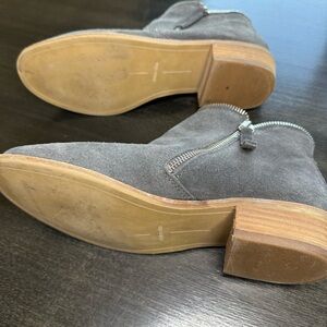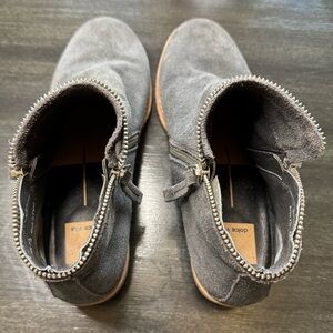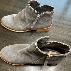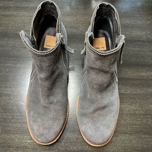 Dolce Vita Hixon Grey Suede Ankle Boots 7.5 Silver Zipper Detail Chunky Heel
