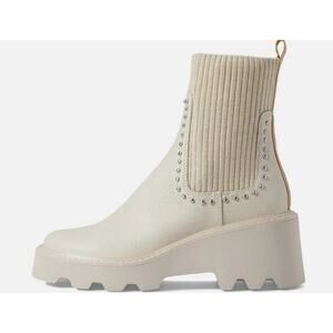Dolce Vita Hoven Stud H2O Boots 10 White Leather Ankle Booties Chelsea Heel Lug