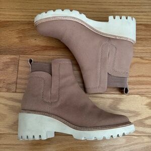 Chelsea style boot in light brown canvas with cream colored sole. Worn only a few times and in great condition!