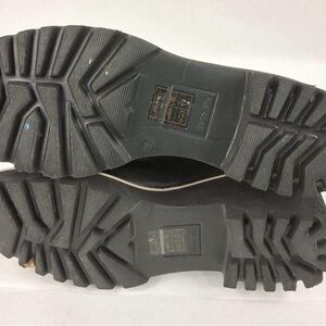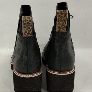 Sleek black leather with brown accents. Chunky sole for added height. Perfect for versatile styling.