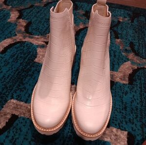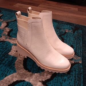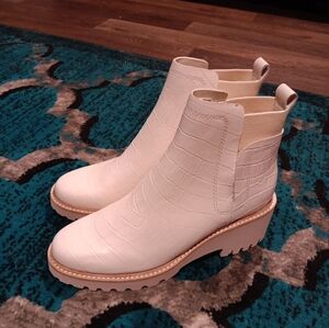 Dolce Vita Huey Ivory Croco Print Leather Ankle Boots