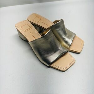 Dolce Vita Jolice heeled leather slide sandals in metallic gold size 8.5