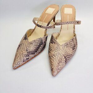 Dolce Vita Kanika Snake Print Sandal Size 11 Pointed Toe Mule Stiletto Tan