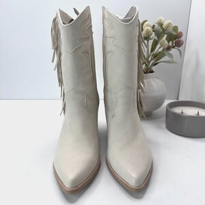 Dolce Vita Liona Leather Western Fringe Ankle Boots Pull On Cream Women's 10 NWD