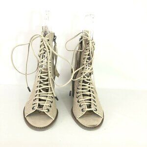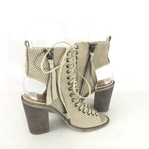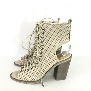 Dolce Vita Size 7 Lira Light Taupe Peep Toe Lace-Up Cutaway Back Booties