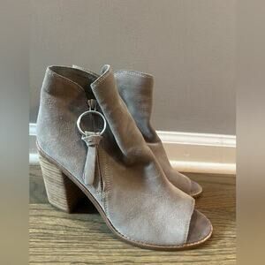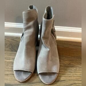 Tannish grey color some scuffs on the heel and signs of wear on toes. See photos - please note color may look different in person