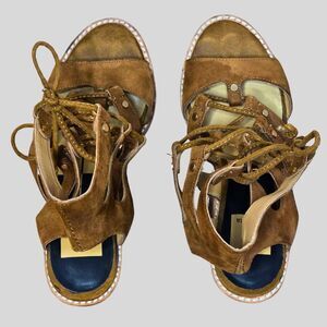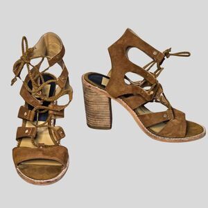 Dolce Vita Lyndon Sandals Women’s Size 6.5 Brown Suede Lace-Up Block Heel Boho