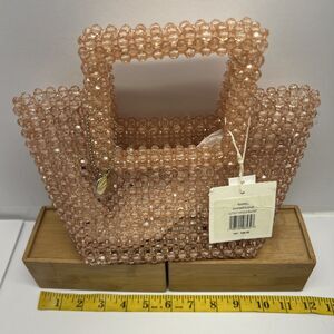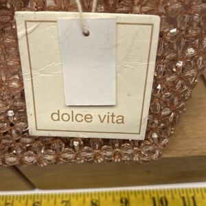 Dolce Vita Marel Champagne Cutout Handle Bucket Small Purse Apricot Beads Woven Together NEW Dolce Vita Purse Charm Size is 8" x 7"
