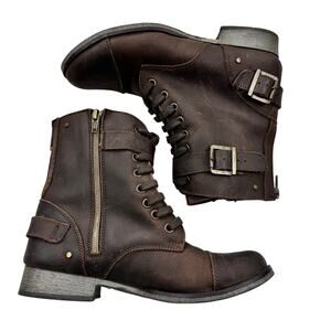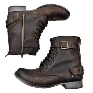 Dolce Vita Matte Brown Buckle Lace Up Zipper Combat Boots Women's Size 7.5.