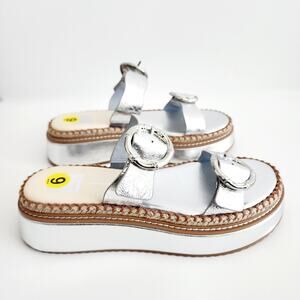 Dolce Vita Metallic Silver & Jute Patent Leather Buckle Accent Chunky Platform Sandals Slip On Size 9