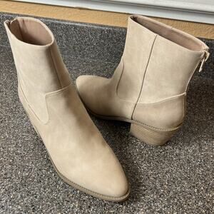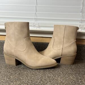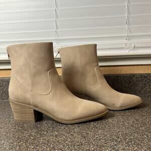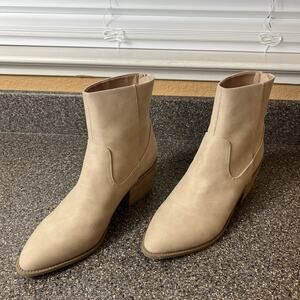 Dolce Vita Mid Calf Boots Block Heel Women's Size 8.5 Cream Faux Suede Pointed Toe