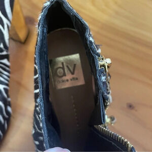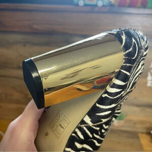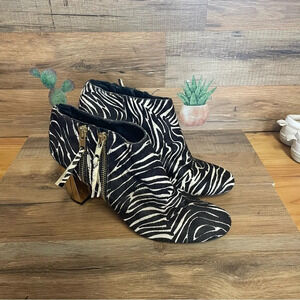 Dolce Vita Nimbus Calf Hair Bootie Black White Women Sz 8 gold heel