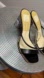 Gently used, worn only a couple of times. There’s a small peel on the heel, visible in the last photo and video.