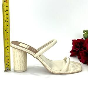 🪲 Dolce Vita Noles Chunky Heel Sandal Size 7.5 Ivory Leather Slip-On Two-Strap Silhouette