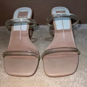 Dolce Vita Noles Nude Clear Straps Round Embossed Heels Women’s size 7.5