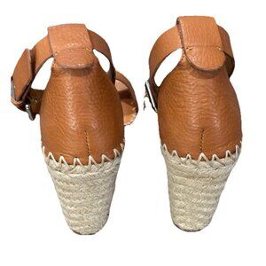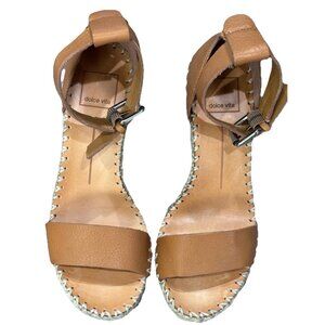 Dolce Vita Noor Tan Leather Espadrille Wedges Sandals - Size 6.5
