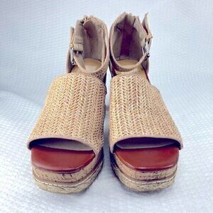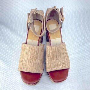 Dolce Vita Otto Espadrille Womens Size 9.5 Tan Woven Rattan Wedge Platform Heels