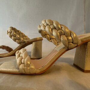 Dolce Vita Paily Gold Braided Block Heel Sandal Women Size 7 NIB