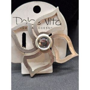 Dolce Vita Paris Silver Tone Floral Leaf Flower Open Brooch Pin Metal Open Work
